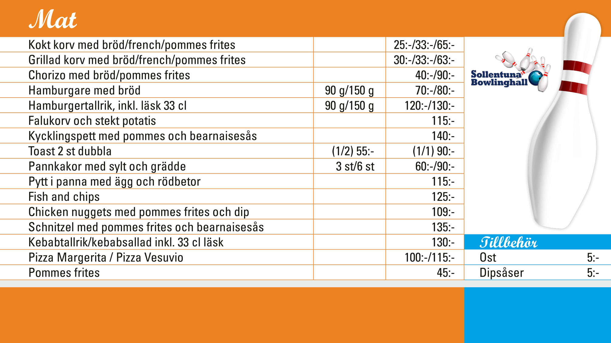 Önskar ni vårt lunchbowlingpaket frågar ni efter dagens specialpris på
